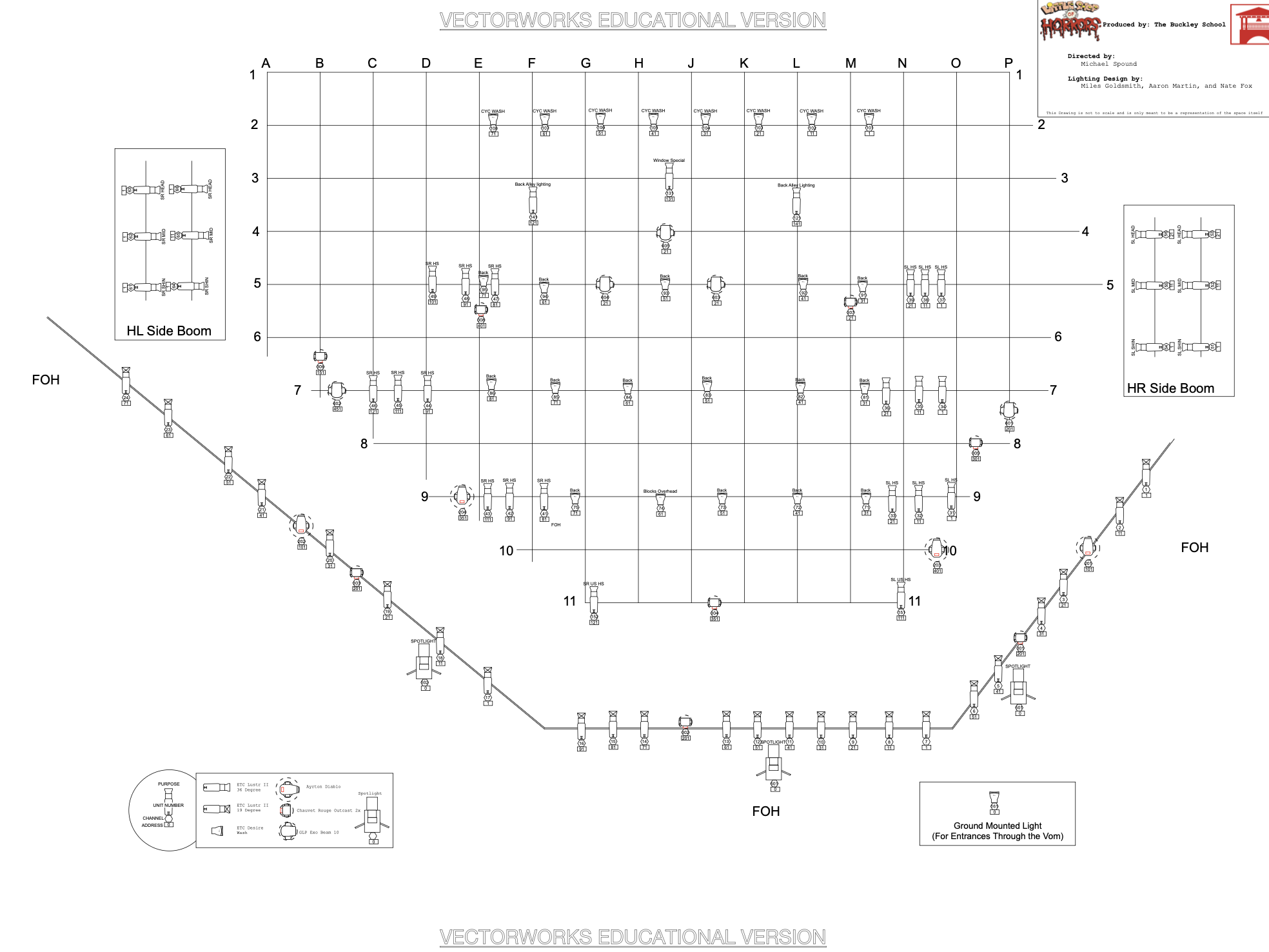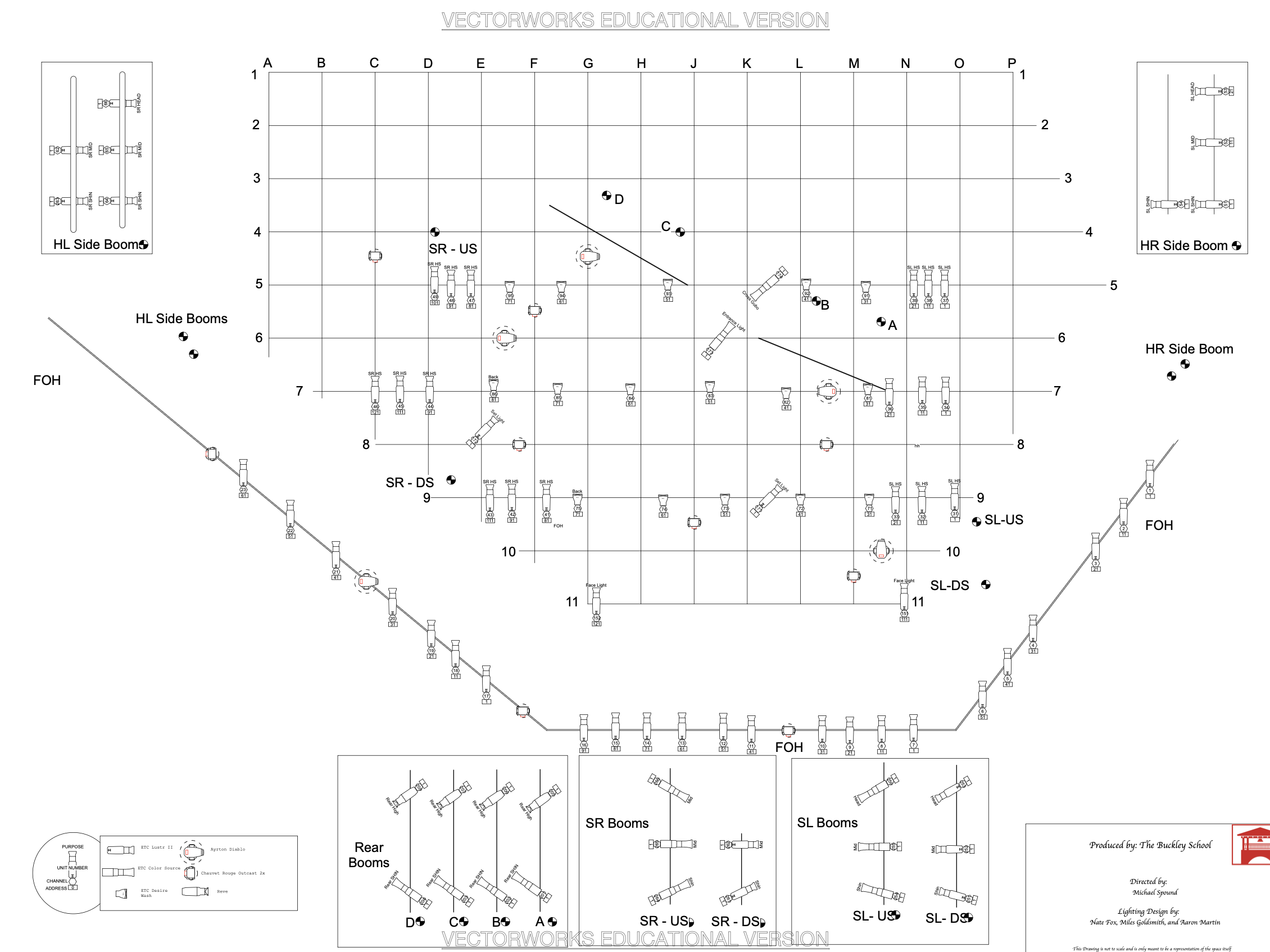 This show was not performed in the normal orientation of the theatre. Additionally, as the designer I wanted to use a number of booms to be able to create some engaging side light effects